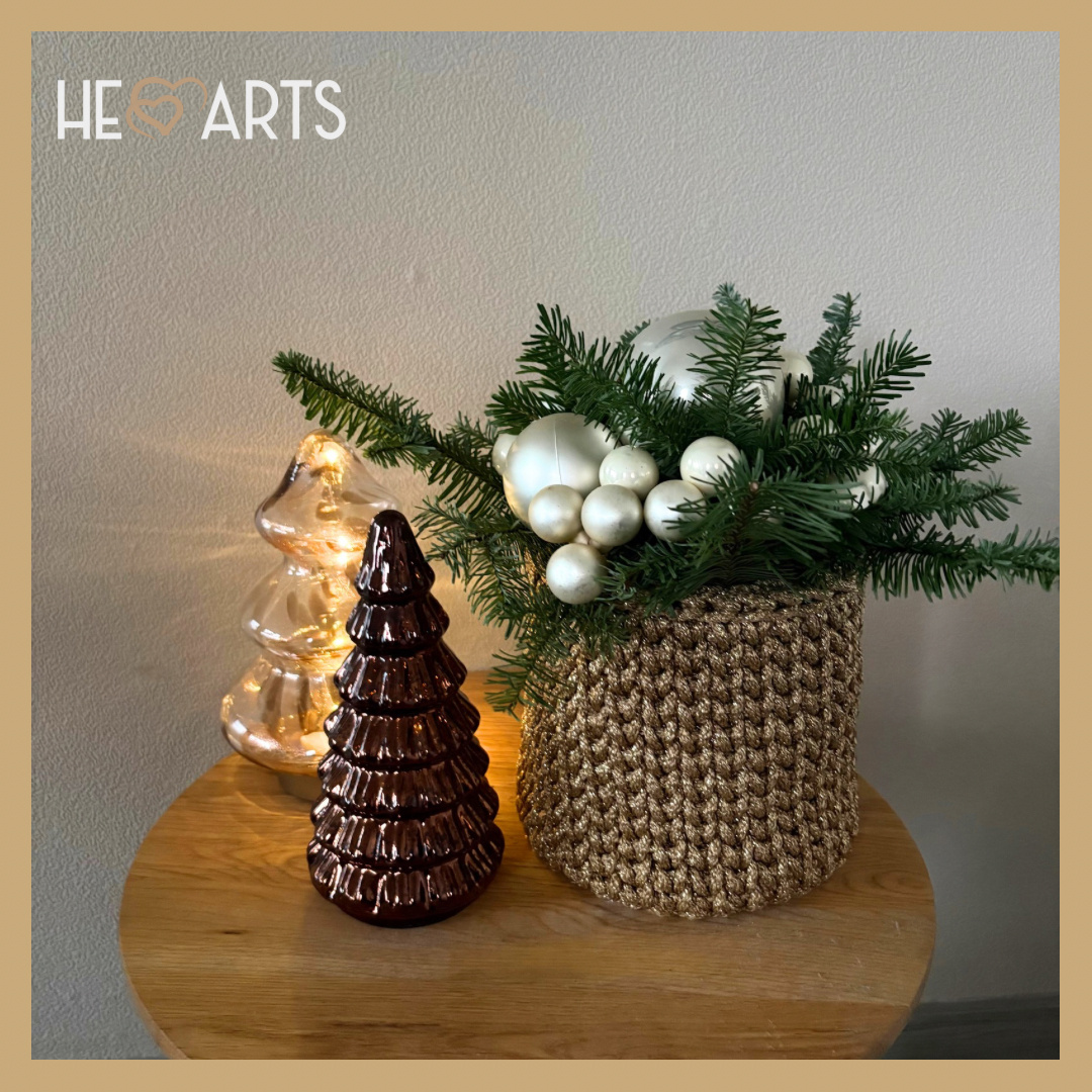 Een speciale uitvoering van de Hearts medium met heel veel bling (lurex)in het garen verwerkt en extra stevig. Te verkrijgen in goud of zilver met een gratis patroon van het mandje.