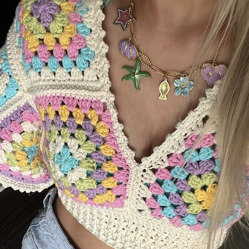Voor de hippe meiden dit geweldige modieuze topje! Gehaakt van Granny’s met de Epic van Yarn and Colors. De Epic haak je met haaknaald 4/4.5 mm. Het topje bestaat uit 6 kleuren Epic, van iedere kleur 2 bollen. Van de lichtste kleur zitten er 4 bollen in het pakket. Ons model draagt maatje S en de kleurencombinatie van het voorbeeld noemen we Candy. Je kunt ook zelf je kleuren kiezen. In het daarvoor bestemde keuzevak vul je zelf de 6 kleuren in. Alle kleuren vind je bij de foto’s of door te klikken op de link.